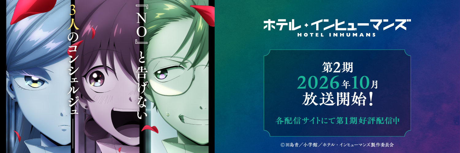 El sitio web oficial del anime Hotel Inhumans reveló que la segunda temporada del anime debutará en octubre. También reveló un visual y un nuevo miembro del cast.