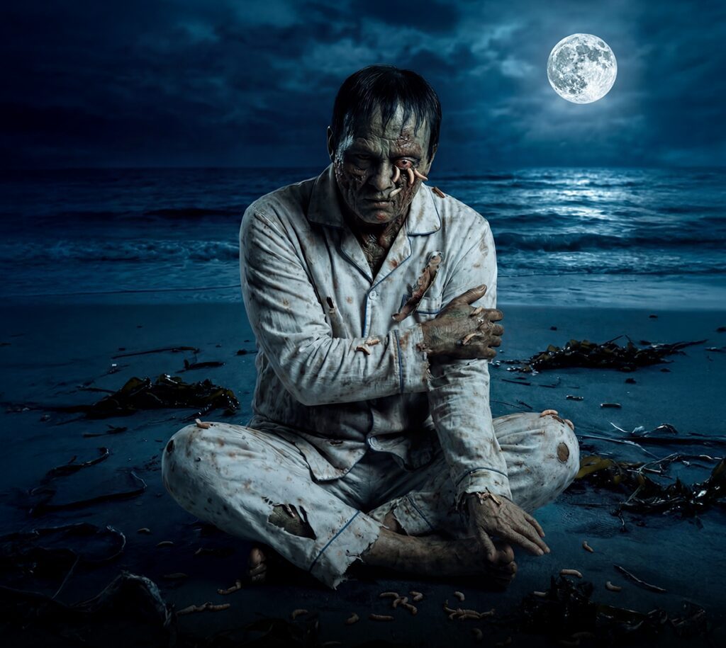 La historia se centra en un hombre que es un “cadáver viviente”, y las personas y organizaciones con las que se encuentra en sus andanzas, incapaz de aceptarse a sí mismo.