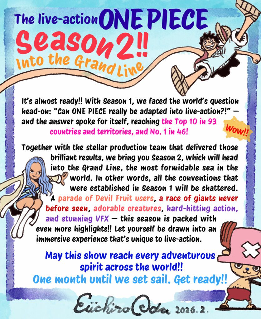 Eiichiro Oda compartió un mensaje con el próximo lanzamiento de la nueva temporada: