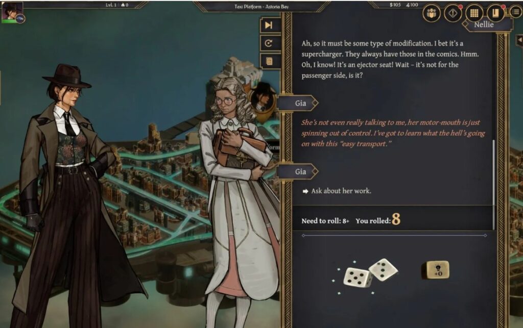 El juego introduce un sistema de resolución por dados inspirado en el rol de mesa. Cada interacción social depende de nuestras estadísticas; si intentamos una acción para la que no somos aptos, sufriremos penalizaciones que dejarán nuestro destino a merced de la suerte. Esta incertidumbre hace que cada conversación se sienta tensa y significativa.