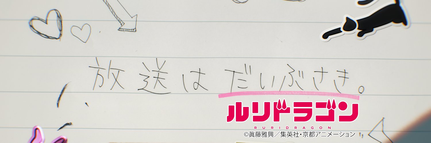 Kyoto Animation reveló en un video de “Agradecimiento” que el manga Ruri Dragon de Masaoki Shindo tendrá una adaptación animada. El anuncio coincide con el cumpleaños de la protagonista Ruri el 28 de diciembre. La leyenda de la descripción del video dice: Parece que están haciendo un anime. La transmisión aún está muy lejos.