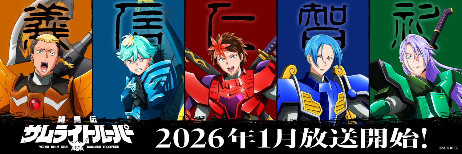 El sitio web oficial de Yoroi Shin Den Samurai Troopers, la nueva secuela de la serie Yoroiden Samurai Troopers, lanzó el primer teaser tráiler de la serie. El video ofrece un breve vistazo a las escenas de acción de la serie. La serie llega en enero de 2026.