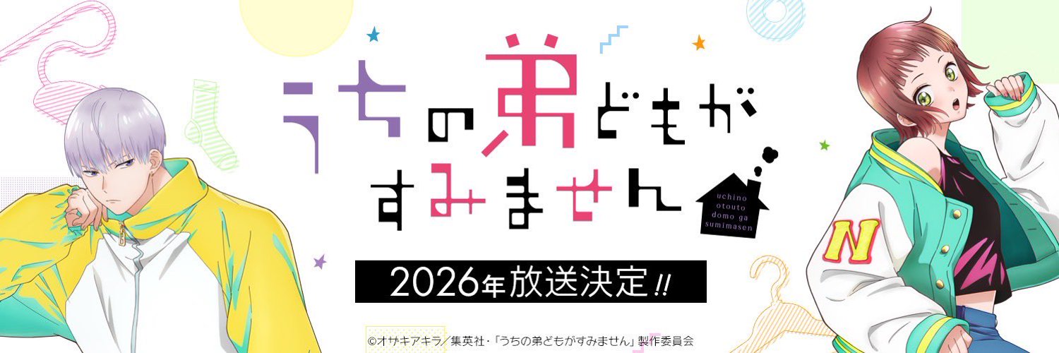 Se abrió un sitio web para anunciar la adaptación animada del manga Sorry About My Younger Brothers (Uchi no Ototo-domo ga Sumimasen) de Akira Ozaki para 2026. El staff reveló un teaser tráiler, visual, cast principal y staff.
