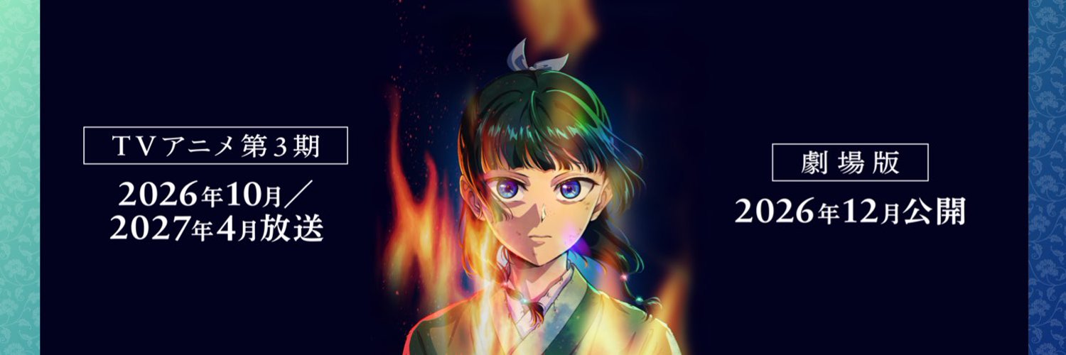 TOHO Animation lanzó un tráiler conmemorativo del segundo aniversario del anime The Apothecary Diaries (con subtítulos en español latinoamericano). El video anuncia que la secuela previamente anunciada será una tercera temporada que se dividirá en dos cours separados. La primera parte se estrenará en octubre de 2026, mientras que la segunda se estrenará en abril de 2027. El video también anunció que se estrenará una película en diciembre de 2026 con una nueva historia de la autora de la serie de novelas originales, Natsu Hyuga.