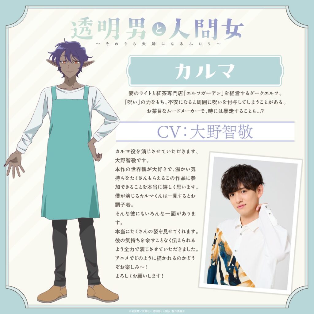 Tomohiro Ono como Karma, un elfo oscuro juguetón y alegre que dirige una tienda de té especializada.